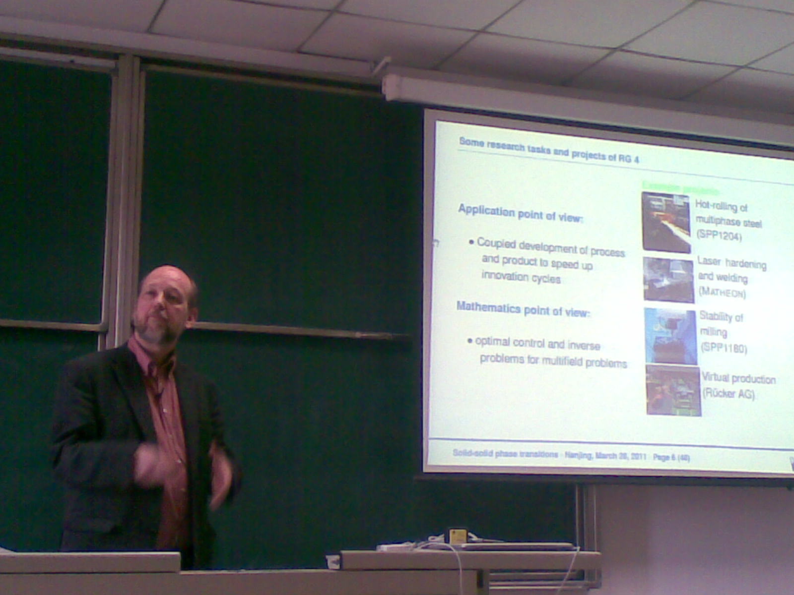 德国马克斯・普朗克数学研究所教授 Dietmar Hömberg 于20113.28来我系访问,给全系师生做了题为 Modelling and optimal control of solid-solid phase transitions - from surface hardening of steel to laser thermo-therapy 的学术报告,受到了全系师生的好评。 |