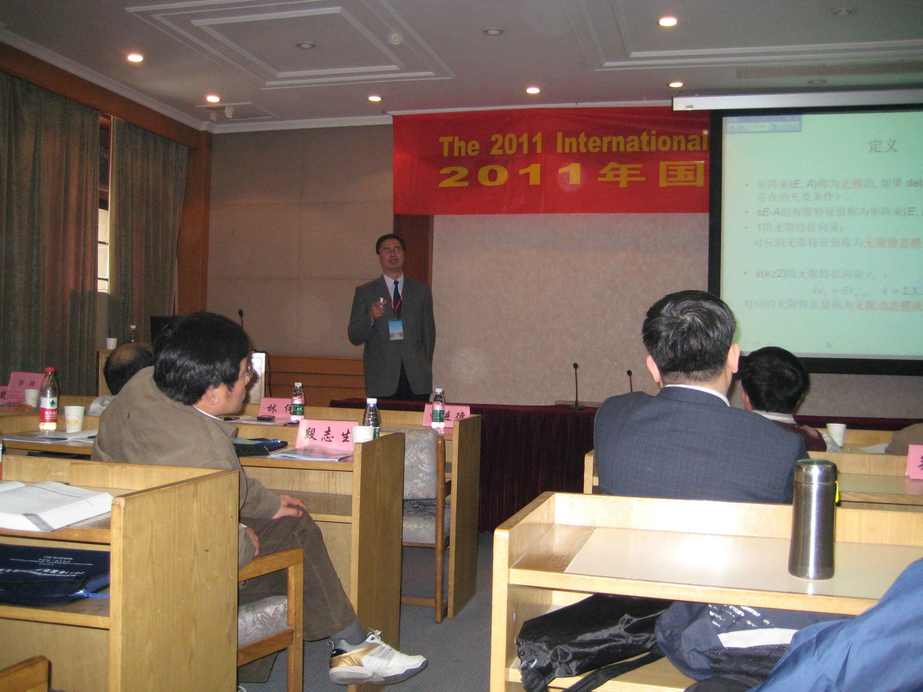 4月23日上午8:30,由我系主办的2011年国际复杂网络与系统会议(The 2011 International Symposium on Complex Networks and Systems)(ISCNS 2011)开幕式在yL23411永利官网登录春晖小礼堂举行。本次会议为期两天,邀请到中国工程院院士、国网电力科学研究院名誉院长薛禹胜教授、香港城市大学陈关荣教授等12名国际著名专家做大会报告,90余名来相关领域的学者出席,围绕复杂网络与复杂系统、多智能体系统、非线性系统与控制、系统生物学、传感器网络、通信网络、网络控制系统及其应用展开了热烈的讨论。