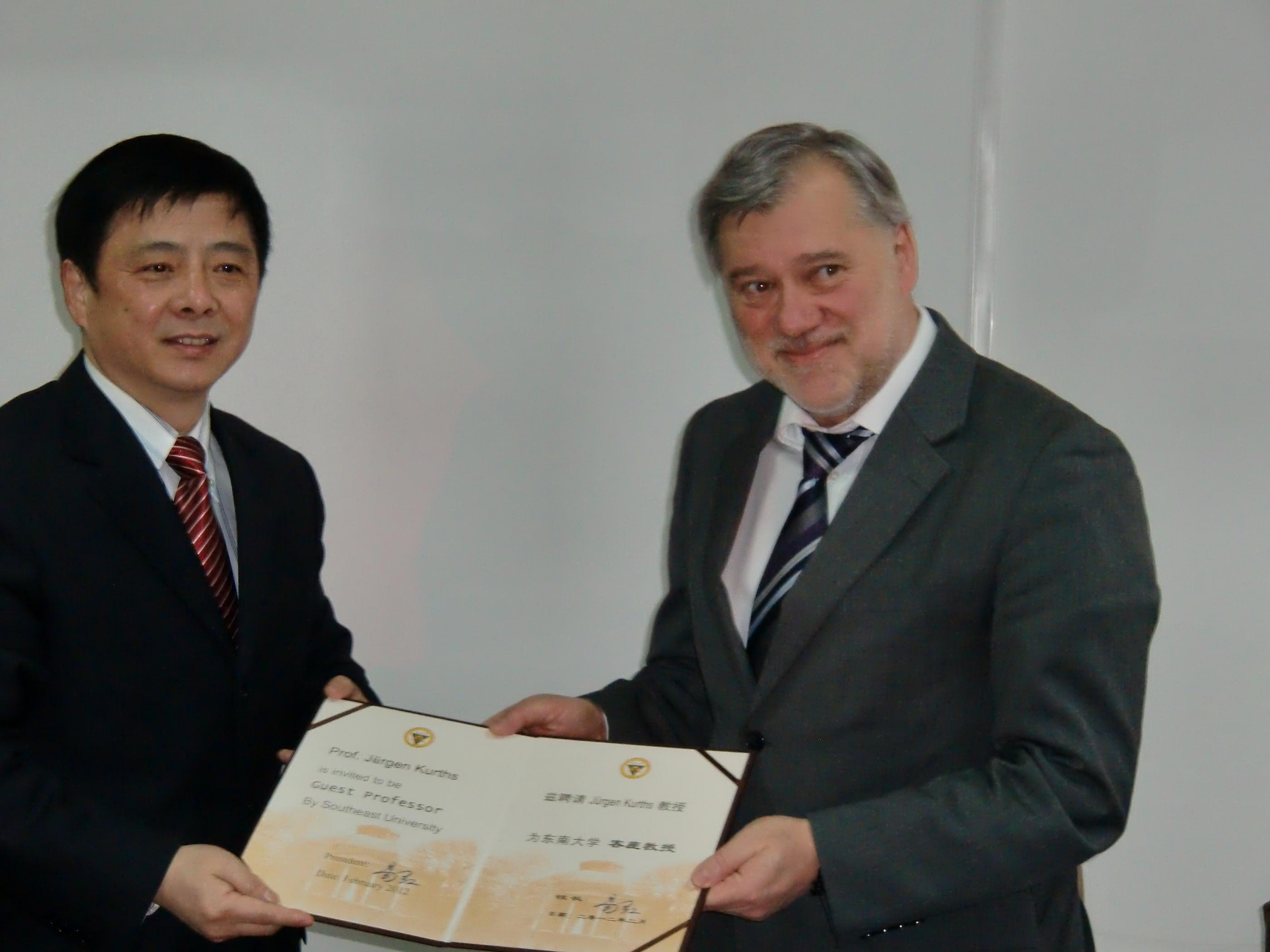 浦跃朴副校长为Kurths教授颁发客座教授证书 |
