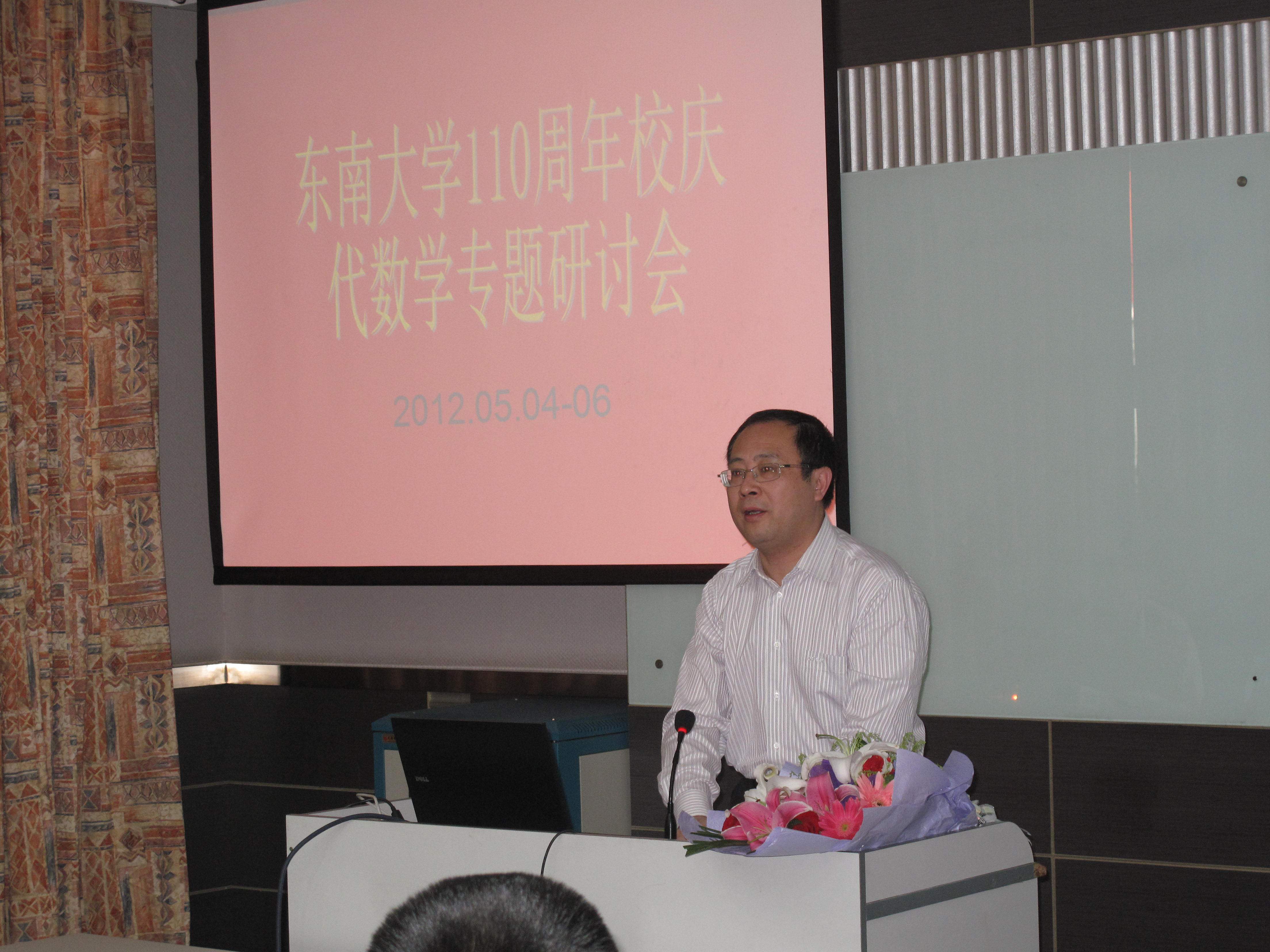 在我校110周年校庆之际,由数学系主办的“代数学专题研讨会”于5月4日至6日在我校四牌楼校区逸夫科技馆举行。胡敏强副校长出席了5日上午的开幕式。来自中国科学院、北京大学、北京师范大学、首都师范大学、复旦大学、上海交通大学、华东师范大学、浙江大学、厦门大学、西北师范大学、苏州大学、南京大学等高校的中国科学院院士、长江学者、杰出青年基金获得者、国家“百千万人才工程”入选者、中国科学院“百人计划”入选者、国家级教学名师、国家精品课程负责人、教育部“高校青年教师奖”获得者、教育部“新世纪优秀人才支持计划”入选者等14位代数学各个方向的专家及学科带头人参加了此次研讨会。