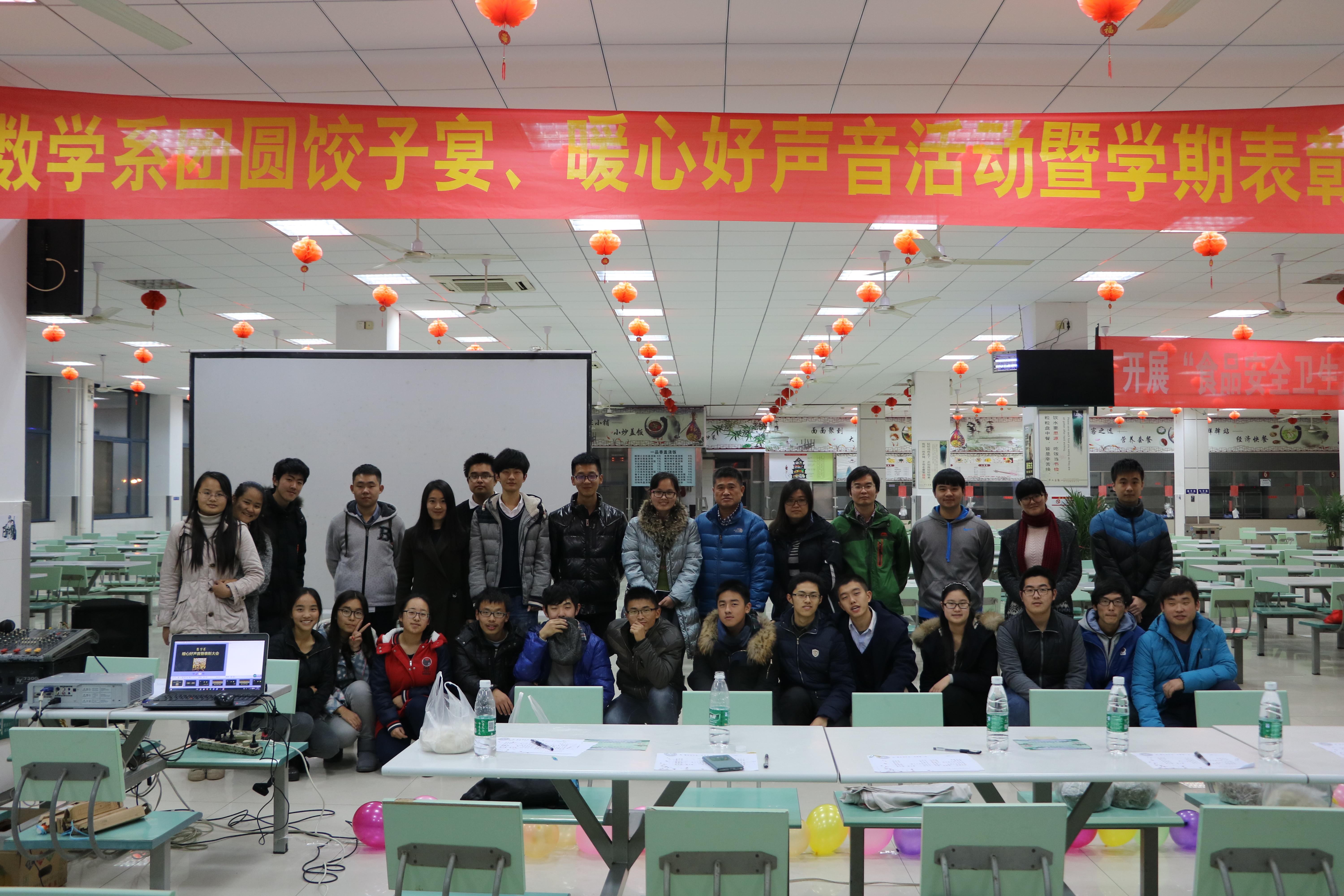 由数学系团委主办的数学系2015年“团圆饺子宴 暖心好声音”暨学期表彰大会于2015年12月17日下午在梅园食堂二楼隆重举行。数学系党委书记吴映红老师、系主任曹进德老师、系党委副书记曹海燕老师、和数学系的研究生导师、班主任老师们均悉数到场,与学生们一起分享这一夜的温馨美好时光! 下午4时,由数学系领导、老师及本科生、研究生所有班级同学一起参加的“团圆饺子宴”在梅园食堂二楼热闹开幕。数学系近300位师生齐聚一堂,一起围桌而坐,吴书记宣布饺子宴开始后,大家分工明确,一切进行得秩序井然。看到饺子馅和饺子皮纷纷端上桌时,师生们都摩拳擦掌、跃跃欲试,准备大显身手。同学们包的饺子各式各样,形态各异,有花边形的,有馄钝样的,有包子款的,甚至还有创意地组合套餐形的,包饺子现场成了创意大赛,热闹非凡。在吴书记和曹主任的鉴赏中,我们还评选出了7个“7系最美饺子”。包好后的饺子都被送到后厨,待食堂师傅推着热气腾腾的饺子车过来时,学生们都迫不及待地一拥而上,尽情地享受着,师生们一起边吃边聊,其乐融融,到处洋溢着温暖和谐的气氛。 饺子宴结束之后,18点30分,由数学系学生会承办的“暖心好声音”歌唱比赛决赛正式拉开了帷幕。经过了初赛的选拔,共有十组选手脱颖而出,进入本场决赛。比赛经过近3个小时的激烈角逐,最终吴雨翰荣获特等奖,尹旭荣获一等奖;吴格和段思毅的组合、霍天佐荣获二等奖,另外唐润宇、尚进迤、李江含三位荣获三等奖。 比赛邀请了陈建龙教授、陈和老师、沈斌老师、袁煜昶老师、陆妍蓉老师,以及来自数学系12级的“东大十佳歌手”“校园好声音四强”谢宇飞同学和物理系学生会主席赵中华同学担任评委。15级大一新生以及部分高年级学生悉数来到现场观看。在比赛将要落幕之际,享有数学系老师中的“好声音”之称的陈建龙教授倾情献唱《故乡的云》,他充满魅力的嗓音和深情款款的演唱征服了在场的师生们,优美的歌声不输参与比赛的选手,成为本次活动的又一大亮点,同时陈老师也希望借由此歌曲让同学们把7系当成自己的故乡,增加对7系这个大家庭的爱。 这次活动旨在提高数学系同学之间的凝聚力,促进相互了解,舒缓学习压力,让同学们在欢聚与歌声中找到家的温暖,并最终取得了圆满成功,获得了外界的一致好评。 |