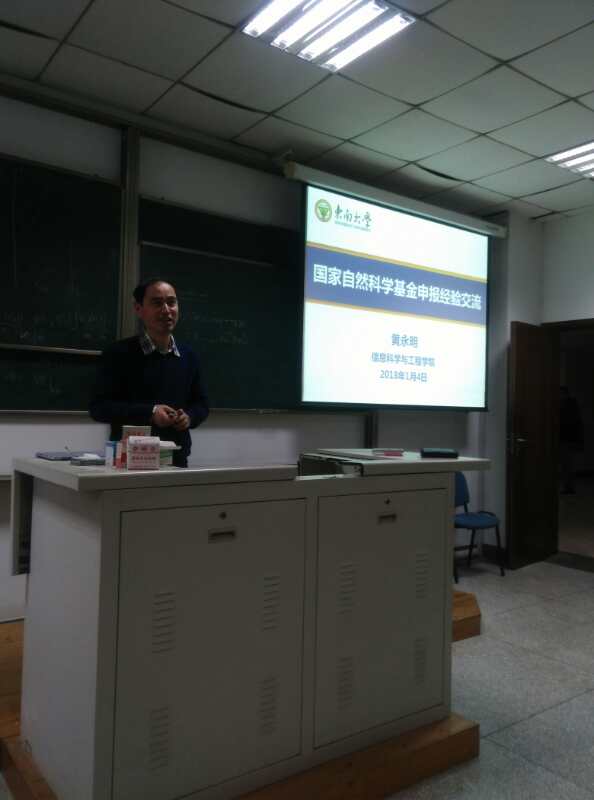 科研院刘磊处长向大家介绍了学校今年的基金申报组织情况,以及向我院下达的指标,并就一些基金申请过程中的关键环节和常见的问题向大家做了说明。黄永明副院长着重就基金申请书的写作跟大家分享了心得和体会,分析了申请书写作的重点内容和写作技巧。接下来,王浩教授向大家讲解了他的基金申请经历和感悟,以及一些注意事项。