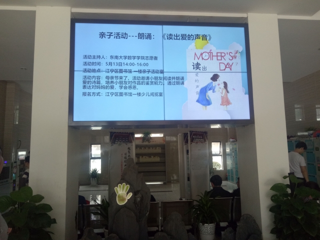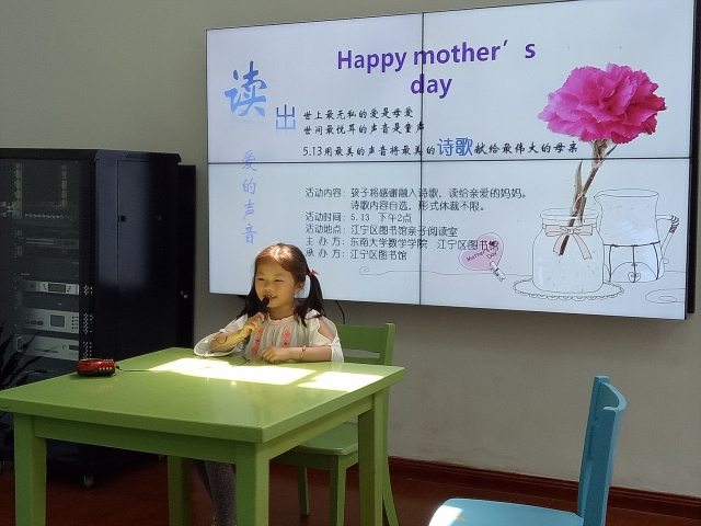 yL23411永利官网登录与央视《朗读者》节目合作,将阅读这一活动带进了yL23411永利官网登录学生的身边,并取得了巨大成功。今年,《朗读者》节目再次开始,与央视再度合作的我们希望能将阅读带到更多人身边。时间又恰逢母亲节,故志服部将朗读与感恩相结合,与江宁图书馆开展了“读出爱的声音”部门小活动。