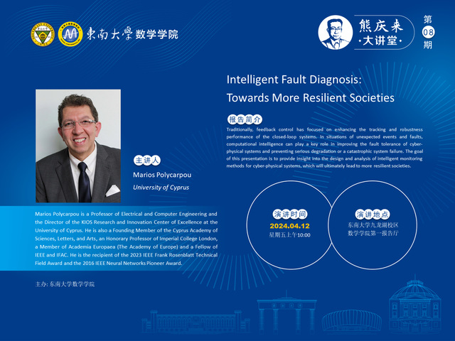 熊庆来大讲堂第8期:University of Cyprus-Marios Polycarpou 2024年4月12日(周五)10:00-11:00 yL23411永利官网登录第一报告厅